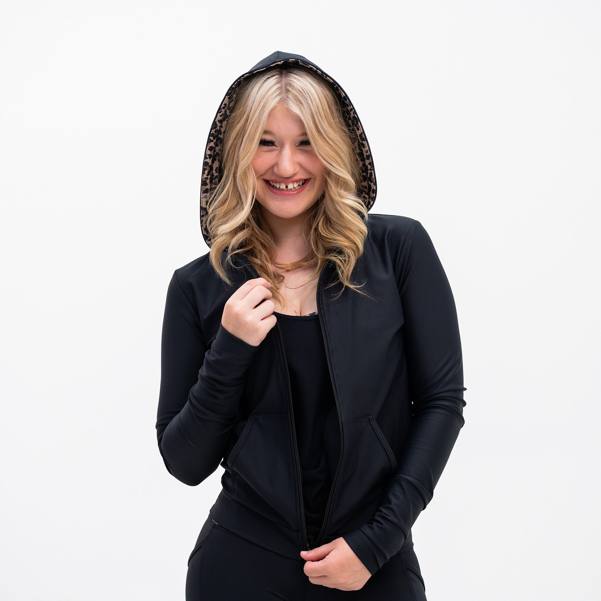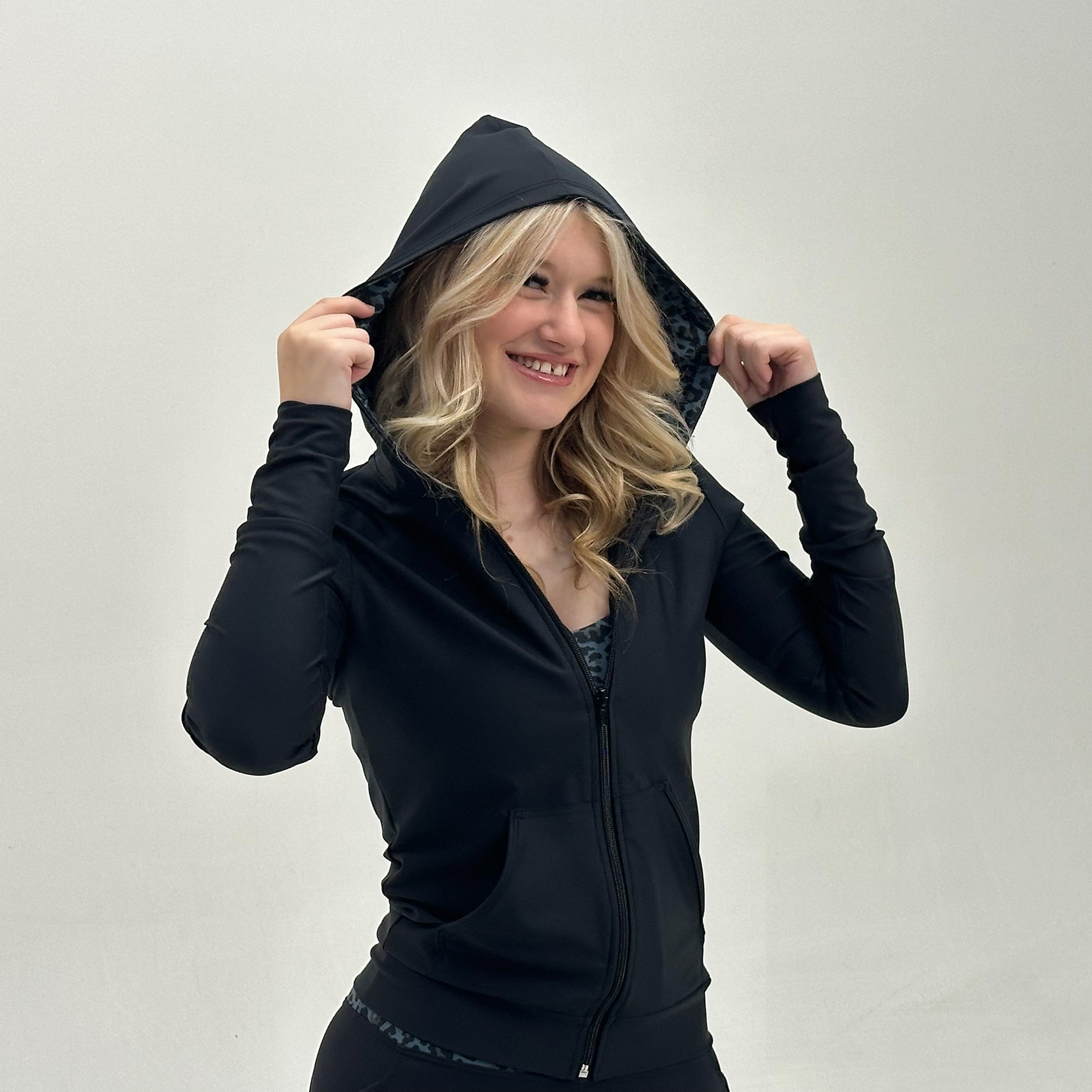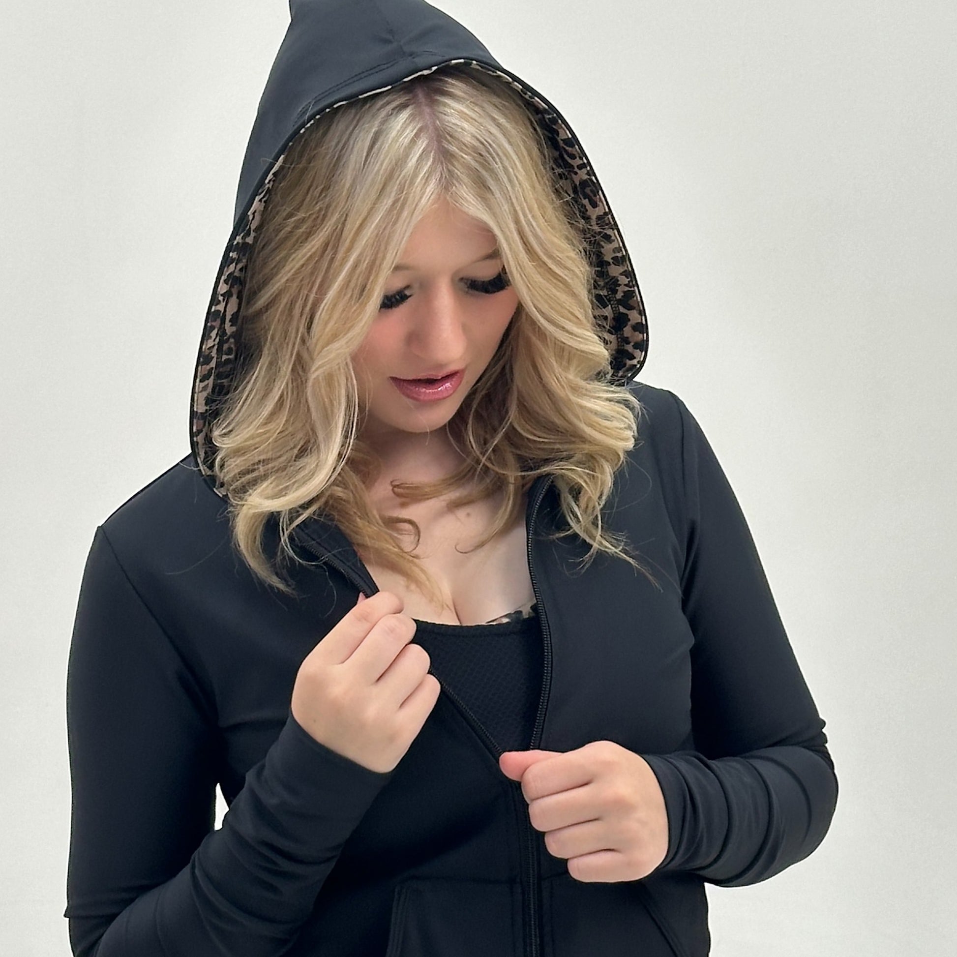 The Jacket with Hoodie, Pockets and zip front is made from sustainably recycled materials to create a compression fabric which feels lovely to wear. It comes in 3 colours which is part of our LEOPARD COLLECTION. The jacket has been designed to co-ordinate back with the leggings, crop and singlet which is a stunning outfit. The jacket will suit anyone aged over 13 years of age. Whether you are a teenager or an adult, Kartiana is for any age group. Our entire Activewear collection has been designed to be worn for many different occasions, not just the gym. Going to the beach, meeting friends in a café, walking the dog, working in general, going on a date, heading out for a picnic, running, walking, dressing it up and so on. Every order also comes with a re-useable linen bag that can be used to store your beautiful Kartiana activewear or for any other occasion.